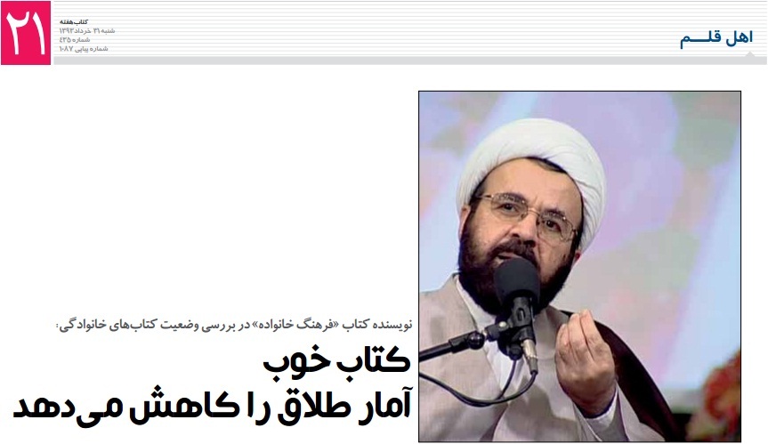 نویسنده کتاب فرهنگ خانواده:کتاب خوب، آمار طلاق را کاهش می دهد